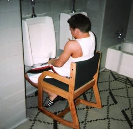 ini buang air kecil dengan duduk di kursi, belum tentu sasaran rudal tepat ke lubang. Bisa basah semua tu. Bagi yang gag punya tenaga besar jangan di coba karna hanya akan membuat ruangan bau.